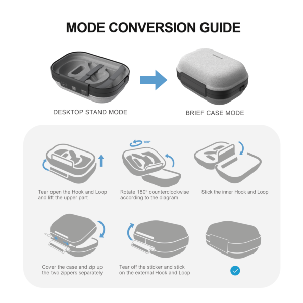 Innovative Desktop Stand Mode: You can switch between two travel modes – on-the-go and desktop mode – by quickly flipping, with the height reduced to just 105cm/4.13inch in desktop mode. In desktop stand mode, it’s easy for you to access your VR device without flipping open the lid, keeping your desktop area tidy.