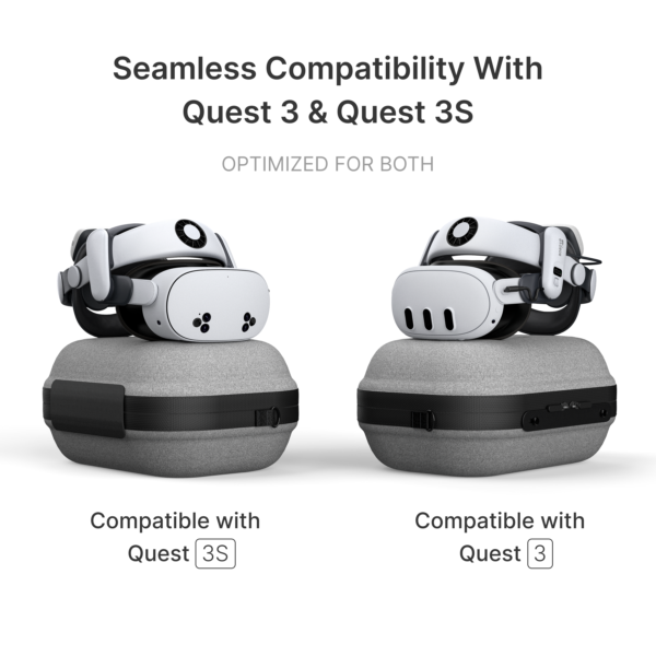 Larger Storage Space: perfectly accommodating the Quest 3 (or 3S) with S3 Pro strap with most of your accessories. It also comes with a dedicated mesh zipper bag for small items such as chargers, cables, and batteries.
