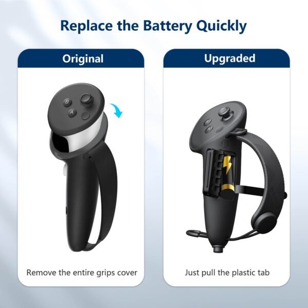 These grips are thoughtfully crafted to fit naturally in your hands, with a thickened and extended design—adding 1.18 inches in length—for extra comfort, especially for users with larger hands. Specifically customized for the Quest 3S / Quest 3 controllers, they offer smoother and more natural hand movements during gameplay.