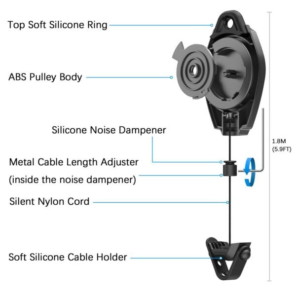 Adjustable cable length with three silicone band sizes and includes 6 retractable cable systems, hooks, screw caps, wrenches, and more, with an 18-month warranty and 24/7 customer support.