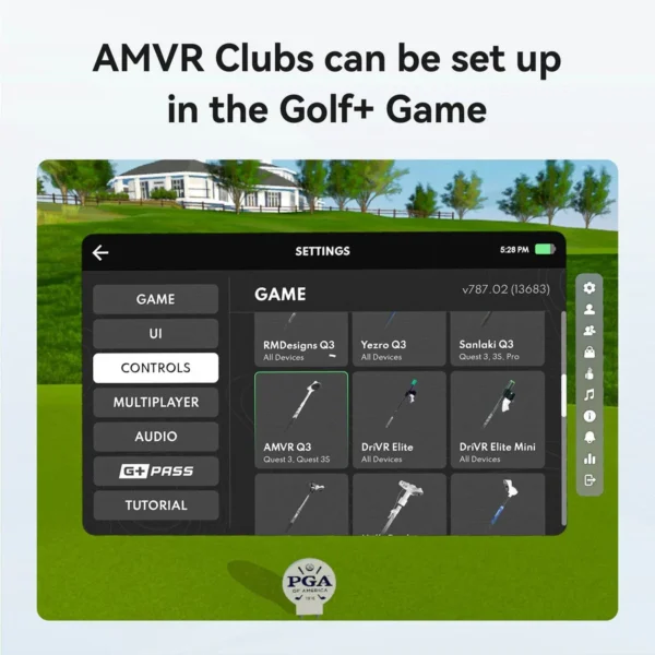 - The standard golf club extends 15.75 inches beyond the controller, offering an ideal length for golfers. Simply select the AMVR preset in Golf+ to start playing.